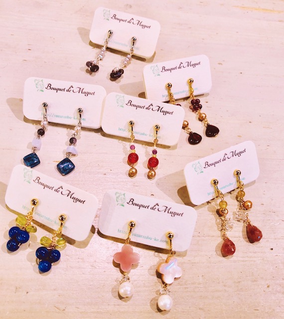 可愛い💕アクセサリーが到着しました 天然石を使ったとってもステキなイヤリングやピアスが沢山入荷いたしました💓 デザイナー渾身の一点ものです⭐️⭐️⭐️ 耳元でキラキラっと揺れるアクセサリーで毎日のテンション上がりますよぉ〜💕 アクセサリー 3000円より 2018年10月10日