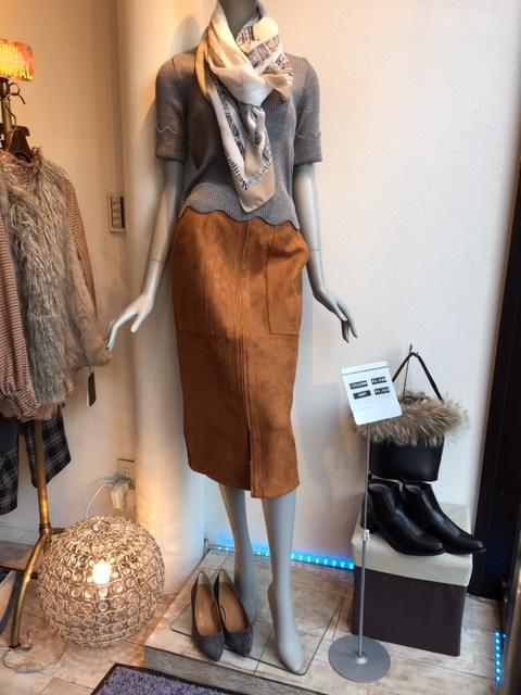 キャメルのタイトスカート キャメルのタイトスカートです。 グレーとの相性抜群!! スウェード調ですが、ポリエステル素材でストレッチが効いてシワになりにくいです👍 ニット¥9,900 スカート¥6,900 2018年10月10日