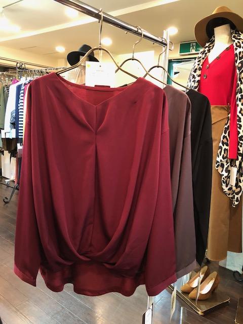 Vネックブラウス 9900円😃 こちらはVネックのブラウスです💓バックが長めなのでヒップが隠れる着丈なのも嬉しいデザイン💕😊👌 秋らしいカラーで揃いました💓 洗濯機でホームクリーニング可能なアイテムです🙌 2018年10月13日