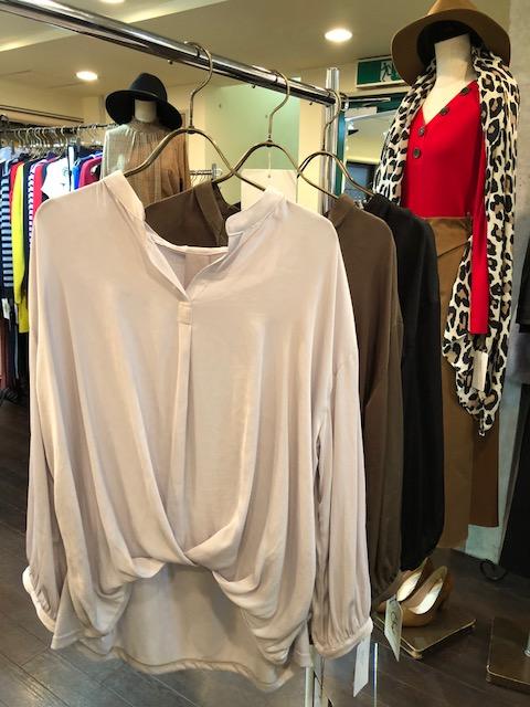 スキッパーブラウス 9900円 何かと使える長袖のブラウスが入荷しました💓😃室内は比較的暖かいので、真冬も重宝します👌インナーにタートルなども合わせられますよぉ〜⭐️⭐️⭐️ ライトグレー、カーキ、ブラックの3カラーです💕 2018年10月13日