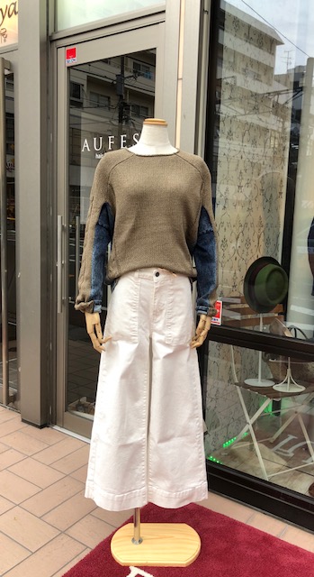 デニム切り替えニットと白デニム💕💕 ストレッチデニムとニットのコンビネーションがステキなトップスが入荷して参りました💕😃 爽やかに白デニムでコーディネートしてみました💓白デニムはとにかくすっきり見えるので大好評です👌足元はスニーカーでもブーツでも素敵ですよぉ〜 2018年10月15日