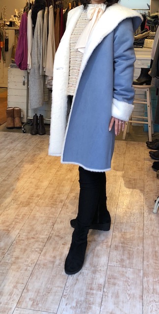 フェイクムートンコート 15800円💓 軽くってふわふわとっても暖かいムートンコートが入荷して来ましたーーー💓😃 黒やアイボリーも素敵ですが、こんなサックスブルーもオススメカラーです💕 新春も爽やかに着て頂けますよぉ〜 2018年10月24日