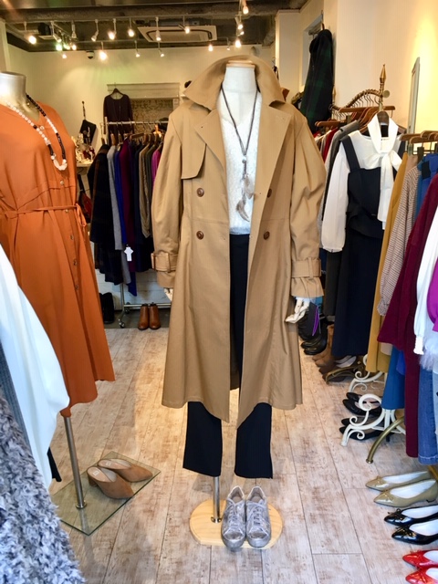トレンチコート ブラウン 茶色のトレンチコートが1点入荷しました。 コットン95パーセントと、ポリウレタン5パーセント。スッキリしたデザイン+少しハイウエストに入ったヨコのラインで脚長効果もあります💖 ¥36,000 iPhoneから送信 2018年10月25日
