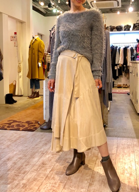 フェザーニット 🇮🇹 11000円💕 フワッフワーのフェザーニットがイタリアから入荷しております💓 とにかく軽くて暖かいのです💕😃 パウダーピンクもございます インポートならではのカラーがとてもステキですよぉ〜 スカート 14800円 ブーツ 18500円 2018年10月30日