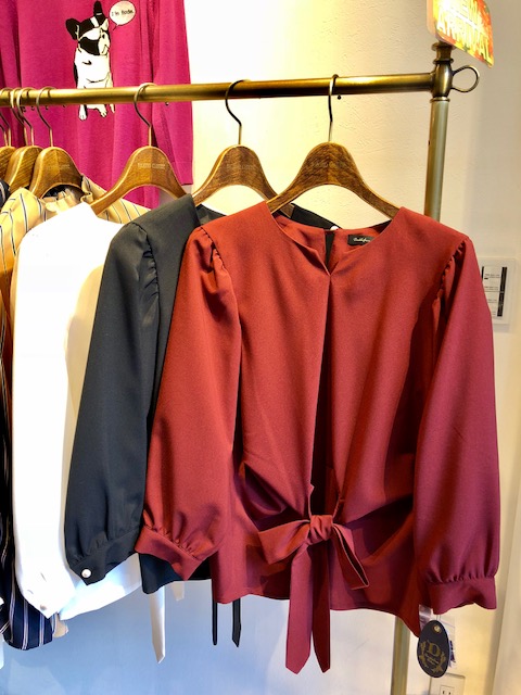 新作ブラウス 12000円💕 フロントのリボンが着こなしのポイントになるブラウスです💓 シワになりにくい上質な生地で、とても着やすいです💓😃🙌 オフ白、レンガ、ブラックの3カラーとなっております 2018年11月3日
