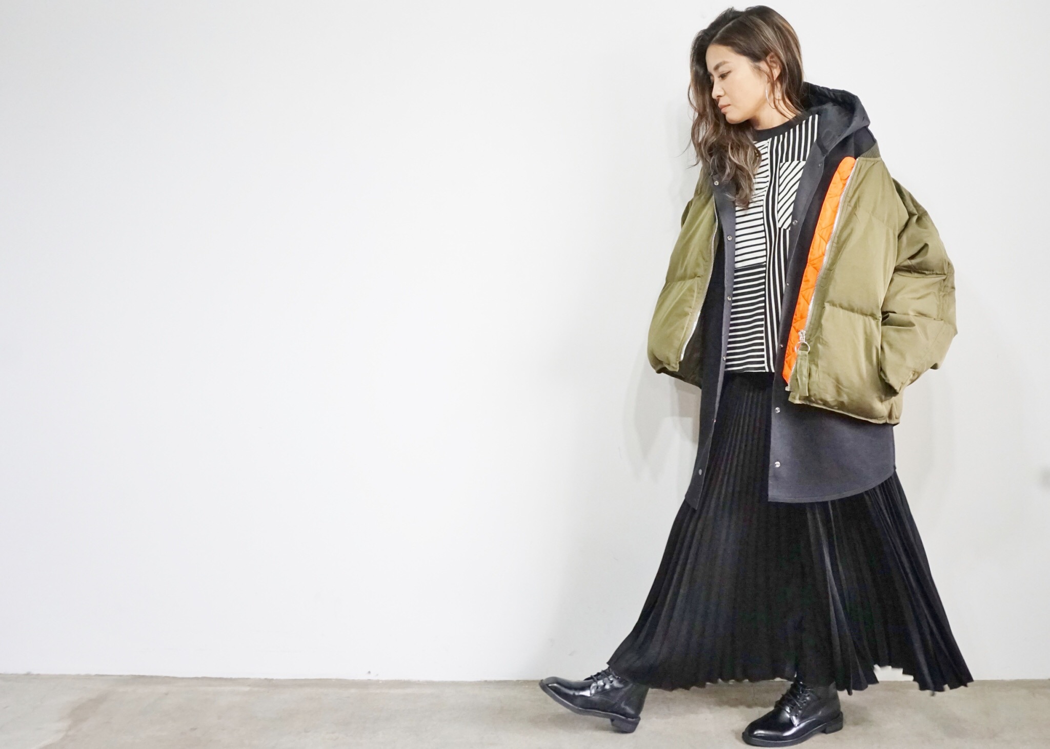 ブラックプリーツスカートのコーディネート やっぱり使えるブラックのボトムス💕💕💕 今年らしさを狙うなら、やはりプリーツのデザインですかねーーー? 履きやすくて楽チンなのも嬉しい⭐️⭐️⭐️ プリーツワイドパンツ 10800円 2018年11月8日