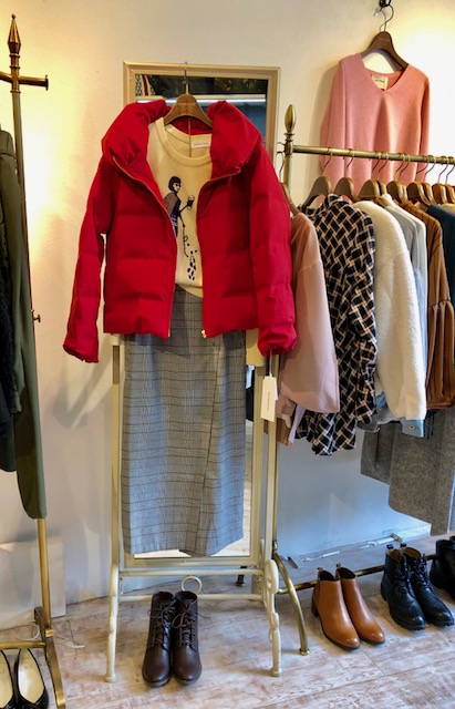 ショートダウン 赤 16800円💕 冬に映える赤のショートダウンジャケットで、チェックのスカートをコーディネートしてみました💓😃 赤は着るだけで元気になれそうなビタミンカラーです⭐️⭐️⭐️ 風邪なんかひかない様に、内側から温めてルンルンでお出かけしてくださいませーー💕 チェックスカート 7900円 レースアップブーツ 8900円 2018年11月14日