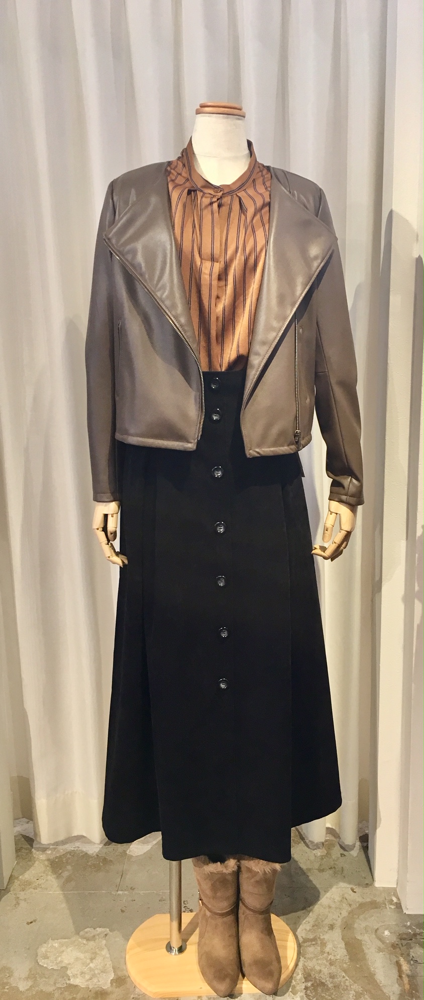 コーデュロイの、ロングスカートです。 大きめのボタンがポイント^_^