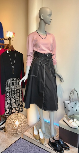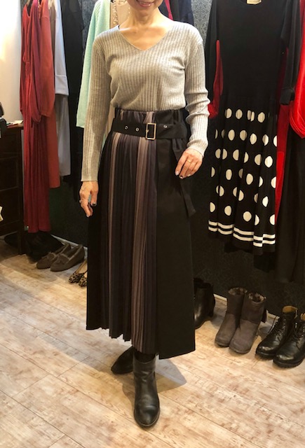 ベルト付きデザインスカート💕💕 ベルトとステッチがアクセントの素敵な スカートが入荷しました〜✨✨ ブラック、カーキ、ベージュの三色です💛 ニット 4.900円 スカート 9.800円 2018年11月25日
