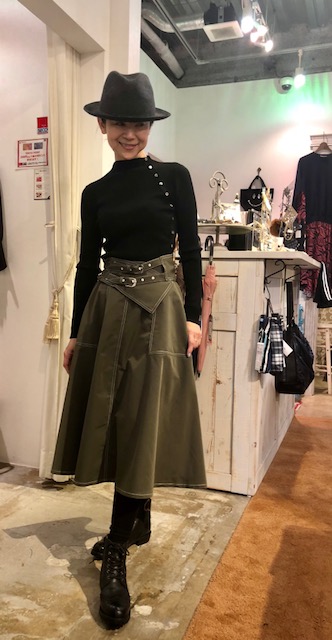 ステッチデザインスカート💕 9800円💕 新しいブランドの新作スカートはいかがでしょう? ウェストのベルトは、取り外し可能なので、他のアイテムにもお使いいただけます こんな素敵なスカートが9800円と大変お得です💓 お写真のカーキの他に、ブラックとベージュがございます⭐️ ニット 6900円 スカート 9800円 ハット 5600円 2018年11月25日