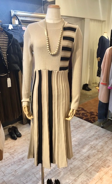 今期はニットワンピース が沢山出てますね💕中でもスッキリ着痩せする縦ストライプが魅力です 黒系のデザイン違いもございます💕