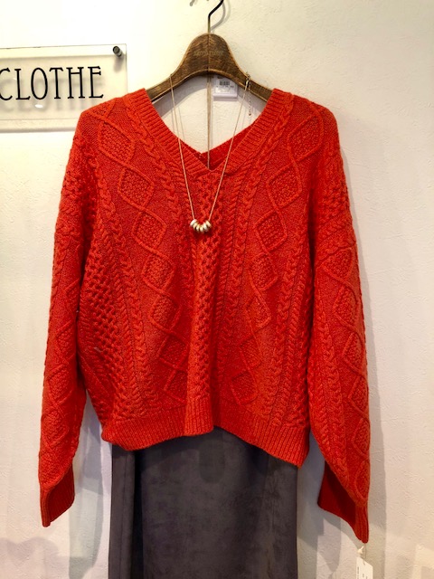 オレンジ色のダイヤ柄ニット 20%オフ💕 こちらは、本日のお得アイテムです💕😃 お洒落なダイヤ柄のニットが何とか2000円以上もお得です⭐️⭐️⭐️ 是非お店に見にいらしてくださいませーーー 2018年12月10日