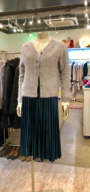 プリーツスカート 5900円💓 ウェストがゴムの履きやすいスカートが何と5900円です⭐️⭐️⭐️ 合わせたグレーのニットは前後使用が出来る優れもの👌 お色違いの赤もございます ブラウス 6900円💓 ネイビーとグレーもございます 2018年12月25日