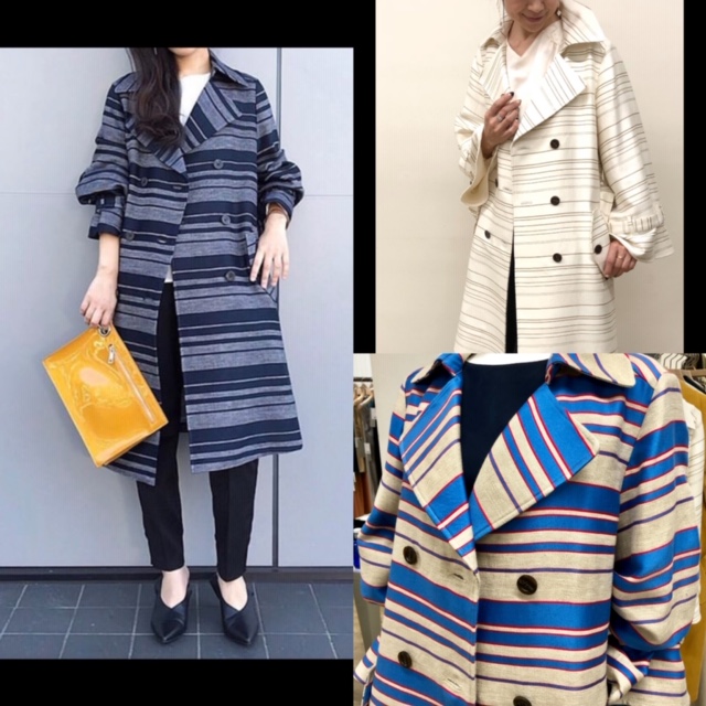 ボーダートレンチコート💕 この春は柄物や生地切り替えのデザインコートがお洒落です💕 脱マンネリの一歩はお洒落なコートから😍🙌 春コートは今が買い時なのです!☺️ ブルー、ベージュ、ブラックの3カラーとなっております💕 ボーダートレンチコート 36000円 2019年1月31日