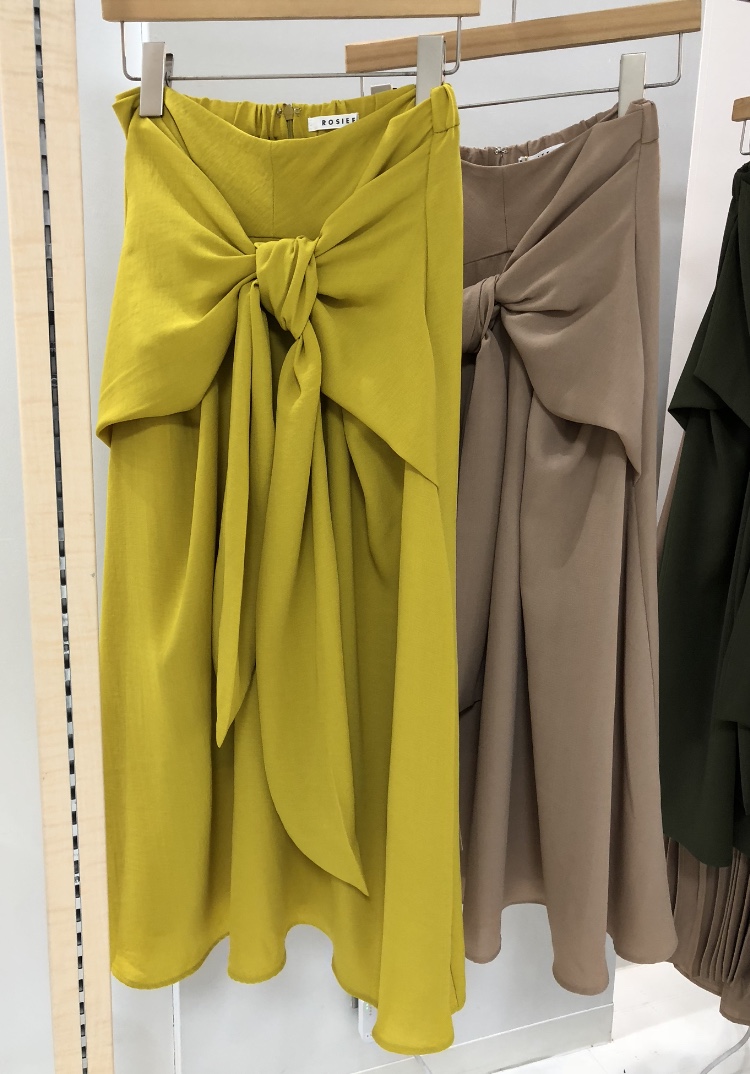前リボンセミフレアスカート🎀 落ち感のあるしなやかな素材のセミフレアスカートです💕☺️ 春っぽいイエローとシックなモカベージュの2カラーで展開しております 前リボンセミフレアスカート 14000円 2019年1月31日