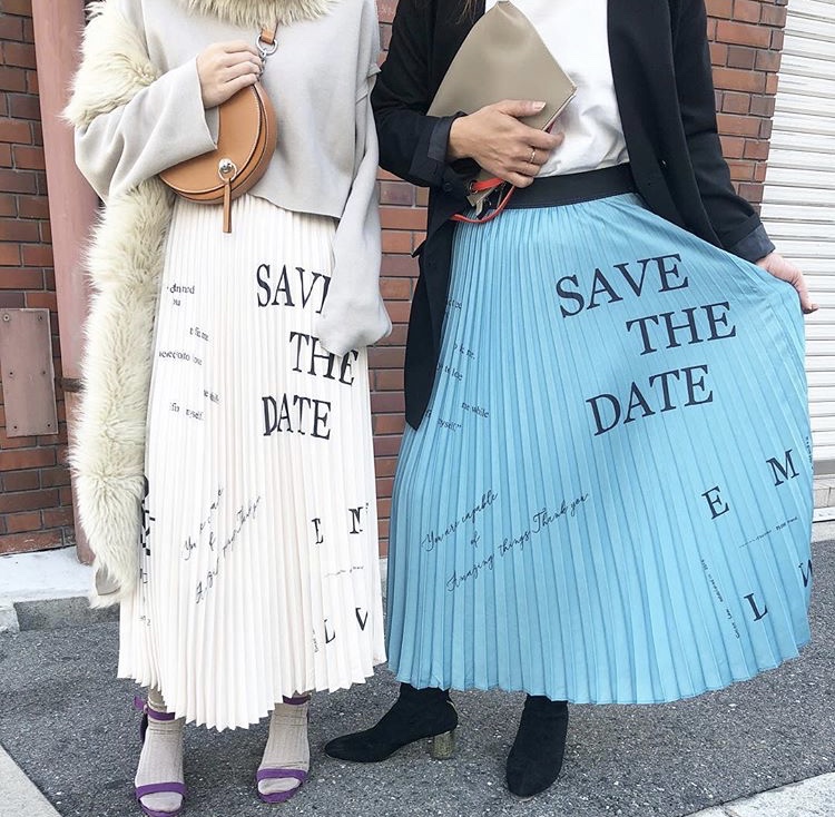 英字プリントのプリーツスカート 9800円💕 オフィスにも使えそうなお洒落なプリーツスカートはいかがでしょうか?💓😃 ポリエステル素材なので、綺麗なプリーツはずっと長持ちです👌😍 パーカーにジャケットの合わせも可愛い💕 2019年1月30日