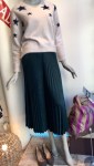 星のvネックニットと、プリーツワイド