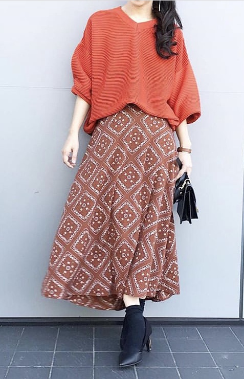 ペイズリー柄のスカート 13000円 シックなペイズリー柄のセミフレアスカートが入荷して来ました 無地ばかりの着こなしを華やかに彩りますお色違いの白地に黒のカラーもございます。ポリエステル素材でオールシーズンお使いいただけますーーー 2019年1月10日