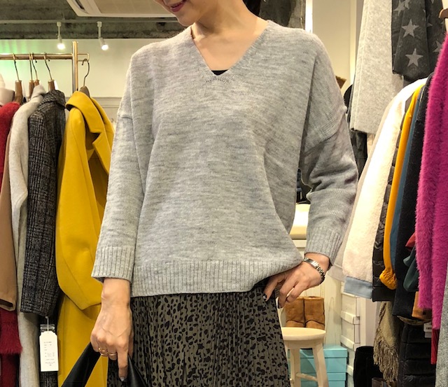 イタリア糸🇮🇹のVネックニット 4720円🎁 イタリア糸のお洒落なVネックニットがとってもお得⭐️⭐️⭐️になりました💕 お写真のライトグレーの他に チャコールグレー、ブラック、マスタード、ビリジアングリーンなどがございます💕 バックテールのデザインなので、サイドからのシルエットもスッキリです💕💕💕 2019年1月11日