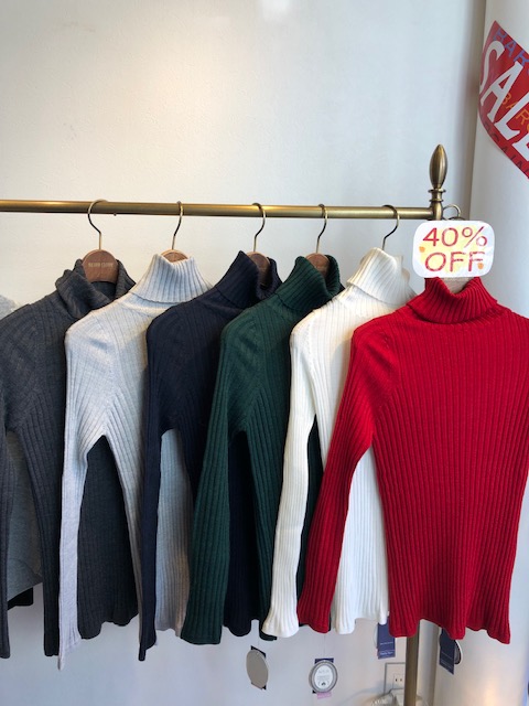 オフタートルデザインニット 50%オフ😃 大人気のオフタートルニットが追加で入荷して参りました💕 着丈が短いのでワイドパンツやスカートにもバッチリ👍💕💕💕 オフタートルデザインニット 9800円→4900円 冬物売り尽くしは27日までとなっておりますので、暖かいお得な商品をお探しの方はぜひお早めにお越しくださいませーーー 2019年1月14日