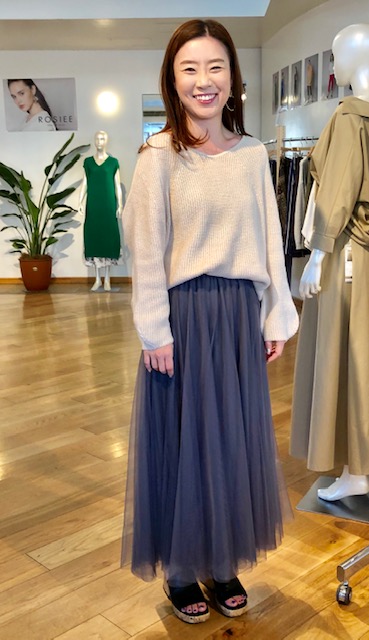 春の新作チュールスカートが明日入荷いたします💕シックなグレーなので、今からすぐに使えますよぉ〜💕💕💕 スニーカー合わせも、素敵です👌
