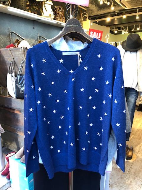 サラッとした糸で編まれた爽やかな星のニットはいかがでしょう? 白とネイビーの2カラーございます💕 4月くらいまでお使いいただけますよぉ〜