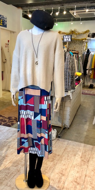 幾何学柄のワンピースとVネックニット イタリア🇮🇹から届いたプリントのワンピにシンプルなVネックのニットを合わせてみました💕 柔らかなミルクティー☕️みたいなカラーがビビットなプリントに馴染みますーーー ワンピース 16000円 ニット 8900円→5340円💕 2019年1月20日
