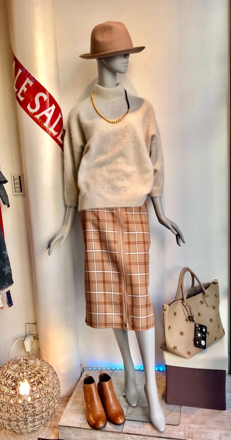 チェック❎ベージュの2wayスカート チェックと無地のリバーシブルタイトスカートが再入荷いたしました さらっとした生地なので、春先までお使いいただけます チェックスカート 9660円 2019年1月21日