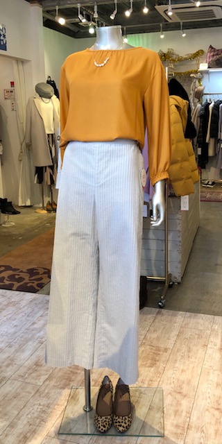 コーデュロイパンツ 13300円💕 ストレッチコーデュロイパンツが大変お得になりました💕😃 マスタードカラーのウォッシャブルブラウスと合わせて春らしい着こなしになりますよぉ〜💕💕💕 パンツは、ネイビーもございます 2019年1月21日