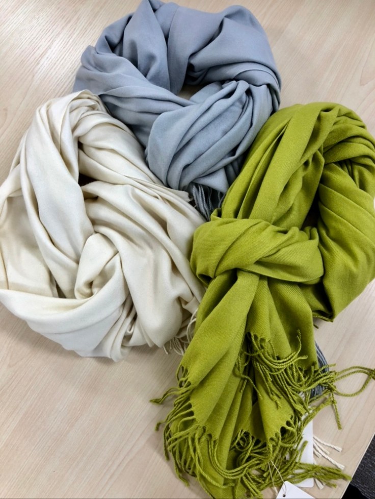 春の大判ストール 3900円💓 暖かくて艶のある大判ストールが入荷して参りました💓😃🙌春先の冷たい風から身を守ってくれる強い味方です💕 サックスブルー、アイボリー、グリーンの3色です 2019年1月25日