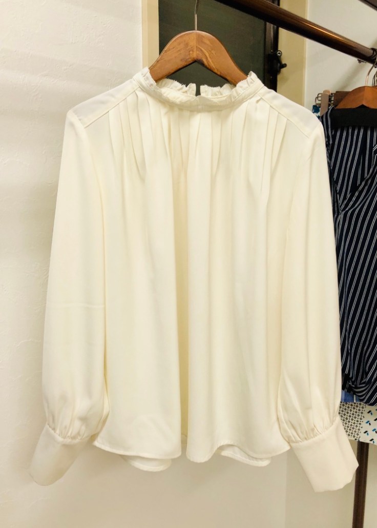 春の白いブラス 6900円💓 これからのシーズンに欠かせない白いブラウスが再入荷致しましたーーー💕💕💕 入学式や卒業式にもお使い頂けるクオリティです💕お色違いのライトグレーやネイビーもございます 盛り袖ブラウスが全盛の中、シンプルなスタンドブラウスは貴重ですよぉ〜👌 2019年1月25日