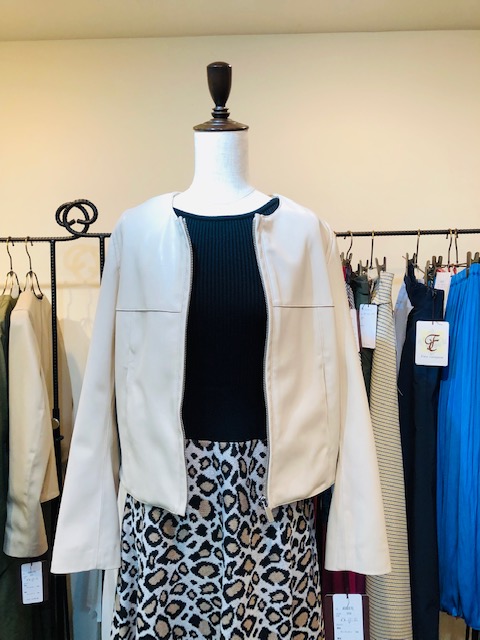合皮の丸首ジャケット 16000円💕 春の着こなしにお役立ちのライダースジャケットが入荷しております💕😃 ボトムスを選ばない優れものですよぉ〜 軽くてソフトな着心地がたまりませーーん⭐️⭐️⭐️ 2019年1月27日