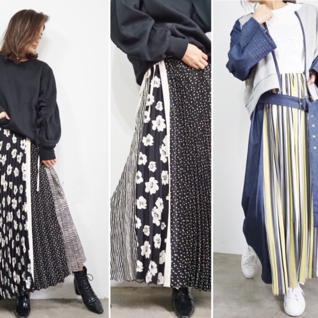 デザインプリーツスカート💕😍 とってもステキなデザインプリーツスカートが到着しております💕😃 こちらはコーディネート例です トップスもデザインの入ったアイテムを選ぶと、かなりのお洒落上級者⭐️⭐️⭐️ 組み合わせ次第で変幻自在ですね👌☺️ 2019年1月29日