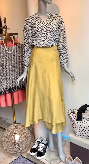 ドットブラウス と黄色のフレアスカート💕 とってもお洒落なドットプリントのブラウスと女らしいフレアスカートのコーディネートはいかがでしょう?💓😍 春物のインナーにした時には、暖かいロングダウンコートとかを着てしっかり保温💕してくださいねーーー 今週末はぐっと冷えて雪が降るかも?の予想ですーーー ブラウス 9800円 スカート 12800円 2019年2月8日