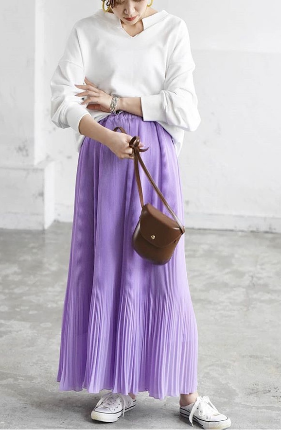 シフォンプリーツスカート 7900円💕 大人気のプリーツスカートは今年一枚は手に入れたい🌸😍ベージュは完売いたしまして こちらのラベンダーとお役立ちのネイビーが追加入荷致しました💕🙌 2019年2月12日