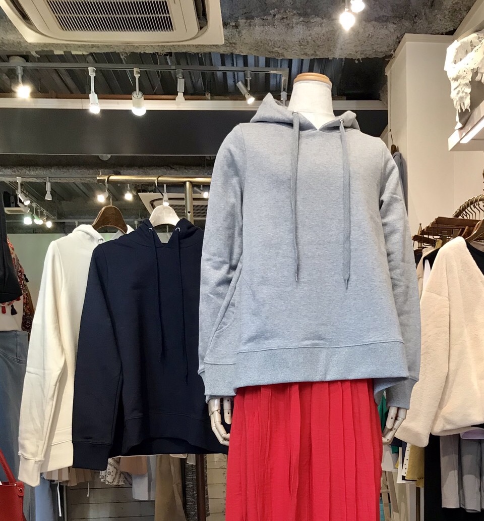 スウェットパーカー 5900円💕 ふわふわ着心地の良いコットン素材のスウェットパーカーが到着しました💕 今年パーカーは着こなしの主役級となっております💕スカートにもパンツにもバッチリです💕 グレー、アイボリー、ネイビーの3カラーとなっております🥰 2019年2月15日