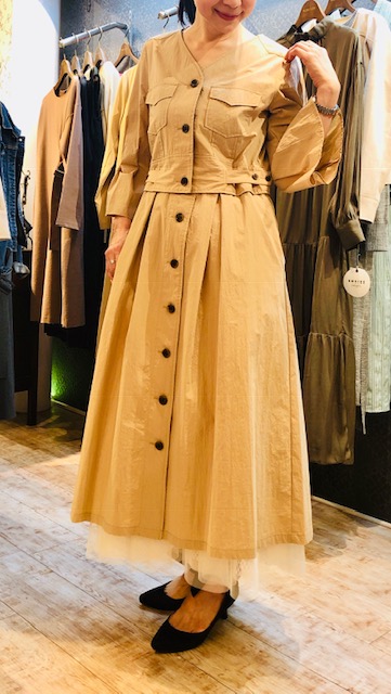 ワンピース 6900円💕 ウェストのタックで体のラインを拾いにくい💕嬉しいワンピースです😆 レギンスと合わせても、また一枚でもスッキリ着ていただけます😃💓💓💓 お色違いでブラックもございます カットの入ったレギンスを合わせると今年らしくなりますね😍 レギンス 5900円💕パンプス 8900円 2019年2月19日