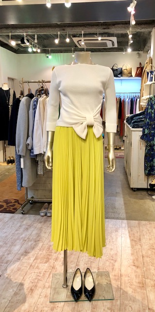 リボントップス 11000円💕 こちらも着るだけでスタイリングがキマる💕リボンニットです🎀 しっかりした素材なので、ホームクリーニングしていつも爽やかにお召しいただけます🙌🥰 綺麗なレモンイエローのプリーツワイドパンツと合わせて春をお楽しみください🌸🌸🌸 2019年3月4日