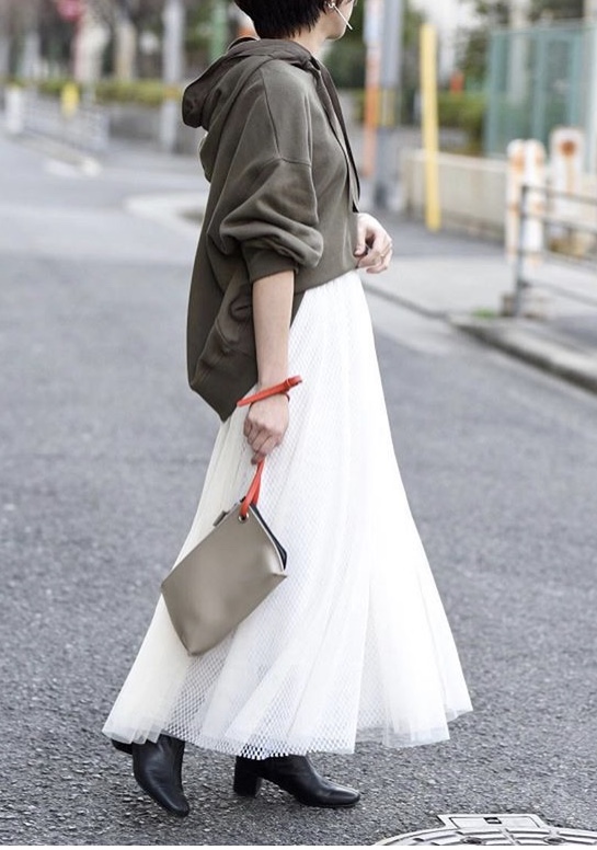 チュールスカート💕 11000円💕 メッシュとチュールの重ねスカートが再入荷いたしました💕😍 甘くなりがちな白のスカートも、クールなメッシュ素材とミックスする事で上手い感じに甘辛ミックスしています⭐️⭐️⭐️ フード付きトップスを合わせてトレンド感をお楽しみくださいませ💓 2019年3月4日