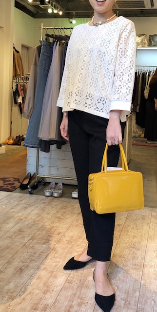 レーストップス 9800円💕 裏が貼ってあるので透けない仕様のレースのプルオーバーはいかがでしょう?🥰 いろんなボトムスに合わせられるスグレモノです⭐️⭐️⭐️ 今回は綺麗なプリーツワイドパンツ を合わせてコーディネートしてみました🌸🌸🌸 派手になり過ぎないブルーが上品です⭐️ 本革サンダル 9800円💕 2019年3月10日