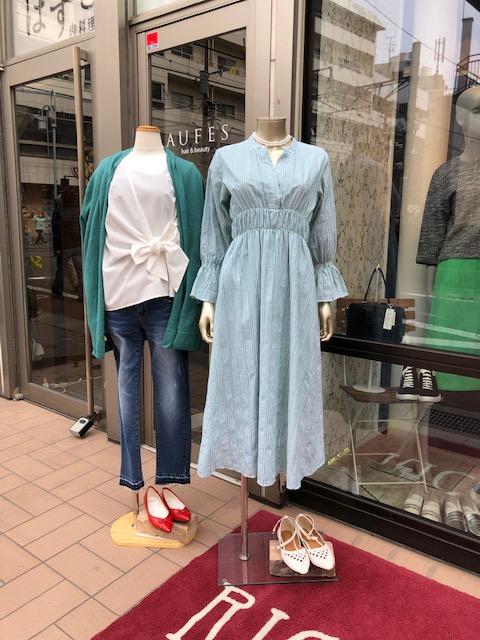本日のコーディネート💕 春らしい爽やかなグリーン系のカーディガンやワンピースはいかがでしょう?🌸🥰 フレッシュな気持ちでお出かけできますよぉ〜 自由が丘はお散歩日和です😍 カーディガン 8900円🌸 ブラウス 12000円🌸 ワンピース 16000円🌸 シューズ 白 9000円🌸 2019年3月10日