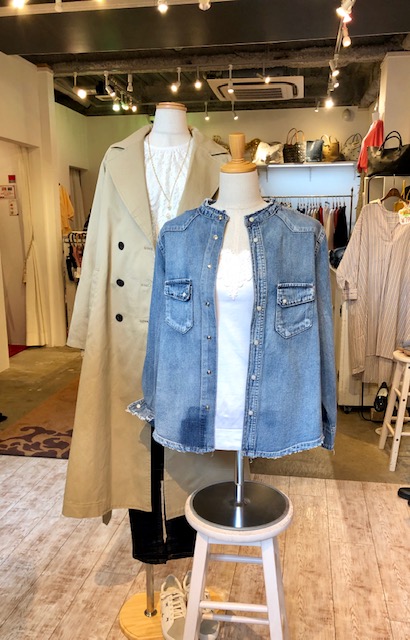 デニムシャツ 9800円💕 トレンチコート 14000円💕 コンパクトなデニム素材の軽いシャツが入荷しました💕春も夏も秋も冬も一年中大活躍してくれそうです⭐️⭐️⭐️ シンプルでカッコ良いトレンチコートは少し長めの着丈が素敵です 2019年3月14日