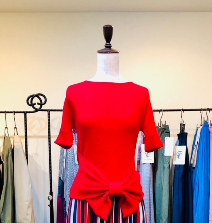 リボンニット 赤 11000円💕 大人気のリボンニットが本日追加で入荷します💕😃🙌白、ネイビー、赤の3カラーです🌸 すぐに売れてしまう人気商品ですので、お早めに見にいらしてくださいませ😊 リボンの無いデザインも入荷しております💕 2019年3月14日