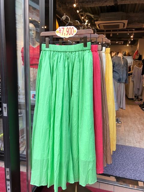カラーロングスカート 7900円💕 お洒落で大人可愛いロングスカートがプチプラで入荷しました💕 グリーン、ベージュ、ピンク、イエロー、オフホワイトの5カラーとなっております😃 ぜひ一枚いかがでしょう?🌸🌸🌸 2019年3月15日