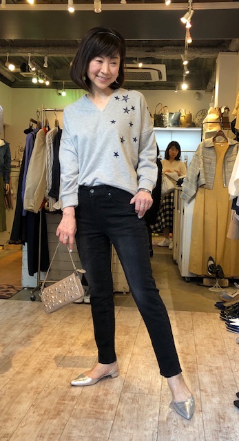 星の刺繍プルオーバー 6900円💕 優しいスウェット素材の生地に星の刺繍が素敵なプルオーバーはいかがでしょう?💕 とにかく細く脚長効果が期待できるブラックデニムを合わせて、めちゃ楽チンコーディネートです⭐️⭐️⭐️ ブラックデニム 13800円💕 メタリックサンダル 9800円💕 星のウォレットバック 5900円💕 2019年3月17日