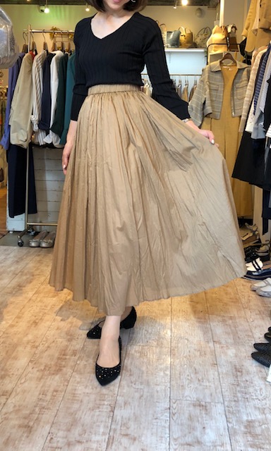 コットンスカート 7900円💕 大人気のコットンカラースカートのモカベージュと美シルエットのサマーニットをコーディネートしてみました💕 今年の春はベージュのアイテムを黒や水色と組み合わせると新鮮になります🌸🌸🌸 是非やってみてくださいねーー ビジューフラットシューズ 9800円🌸 2019年3月17日