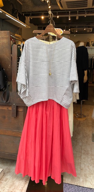 ボーダーカットソーとピンクのスカート 優しい色合いのボーダーカットソーと、チェリーピンクのコットンスカートのコーディネートです💕シルバーや白のサンダル、はたまたスニーカーにもバッチリ👌 大人可愛いを楽しんで下さいませーー💕💕💕 スカート 7900円 2019年3月19日