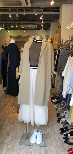 チュールスカートとスプリングコート💕 大人気のチュールスカートをスポーティなラインTシャツで引き締めたコーディネートです💕 コートの袖口のストライプがポイントです😍 トップス 8900円 スカート 11800円 コート 16800円 本革スニーカー 11800円 2019年3月19日