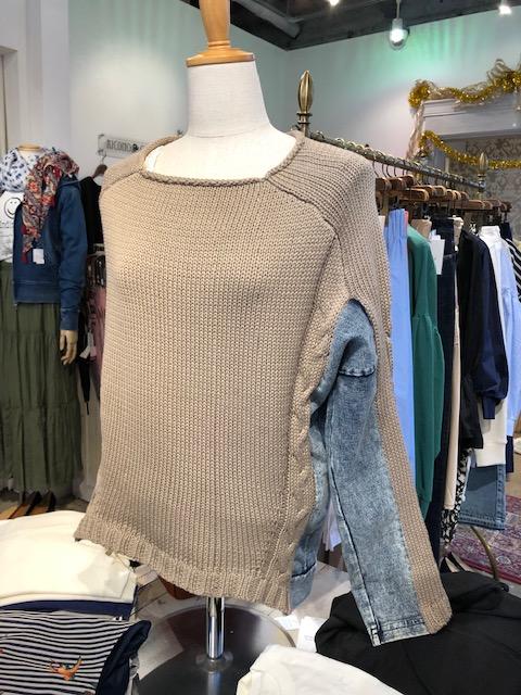 カットデニム切り替えニット 9800円💕 ニットとカットデニムを切り替えた、お洒落な春ニットです💕 少し広めの襟ぐりで小顔効果もございます💕💕💕 プリーツスカートやタイトスカート、もちろんパンツにもバッチリです😍 2019年3月19日