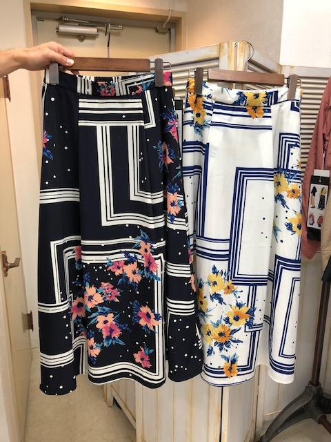 花柄フレアスカート 9800円💕 クールなイメージの花柄スカートです💕 幾何学柄と花柄を組み合わせたお洒落なプリント💕シンプルなデザインでスッキリ着こなせます💕ノーアクセサリーでサラッと着こなしたい一枚😍 2019年3月24日